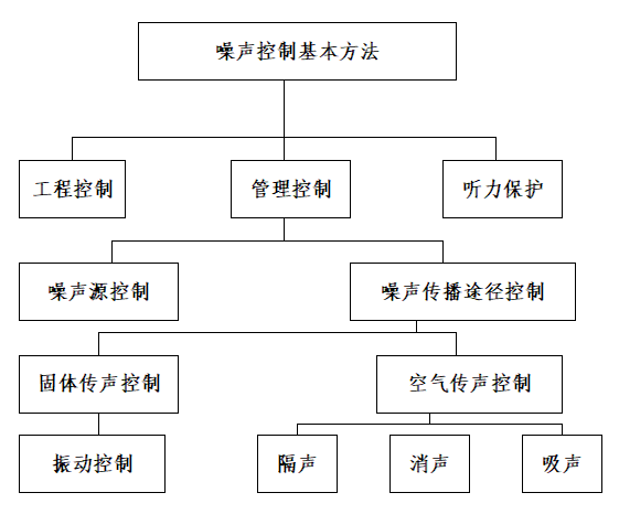 噪聲控制的基本方法主要有:一是管理方面的,另一是技術方面的。用行政管理辦法和技術管理辦法控制噪聲叫管理控制,用技術手段控制噪聲叫工程控制。噪聲控制的基本方法可用下圖表示:
