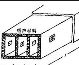 ? ? 迷宮式消聲器也稱室式消聲器。在輸氣管道中途,例如,在空調(diào)系統(tǒng)的風(fēng)機(jī)出口、管道分支處或排氣口,設(shè)置容積較大的箱 ( 室 ) ,在它里面加襯吸聲材料或吸聲障板,就組成迷宮式消聲器,如圖所示。這種消聲器除具有阻性作用外,通過小室斷面的擴(kuò)大與縮小,還具有抗性作用,因此消聲頻率范圍較寬。?
