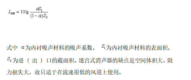 ? ? 迷宮式消聲器的消聲性能與室的尺寸、通道截面、吸聲材料及其面積等因素有關(guān),可用下式估算,