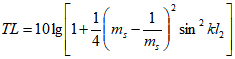 其中TL是消聲量,單位dB, ms=S2/S1=S2/S3稱為消聲器擴(kuò)張比,l2為擴(kuò)張室長度。S1、S3為管道截面積,S2擴(kuò)張室截面積。